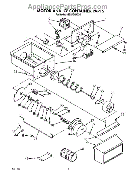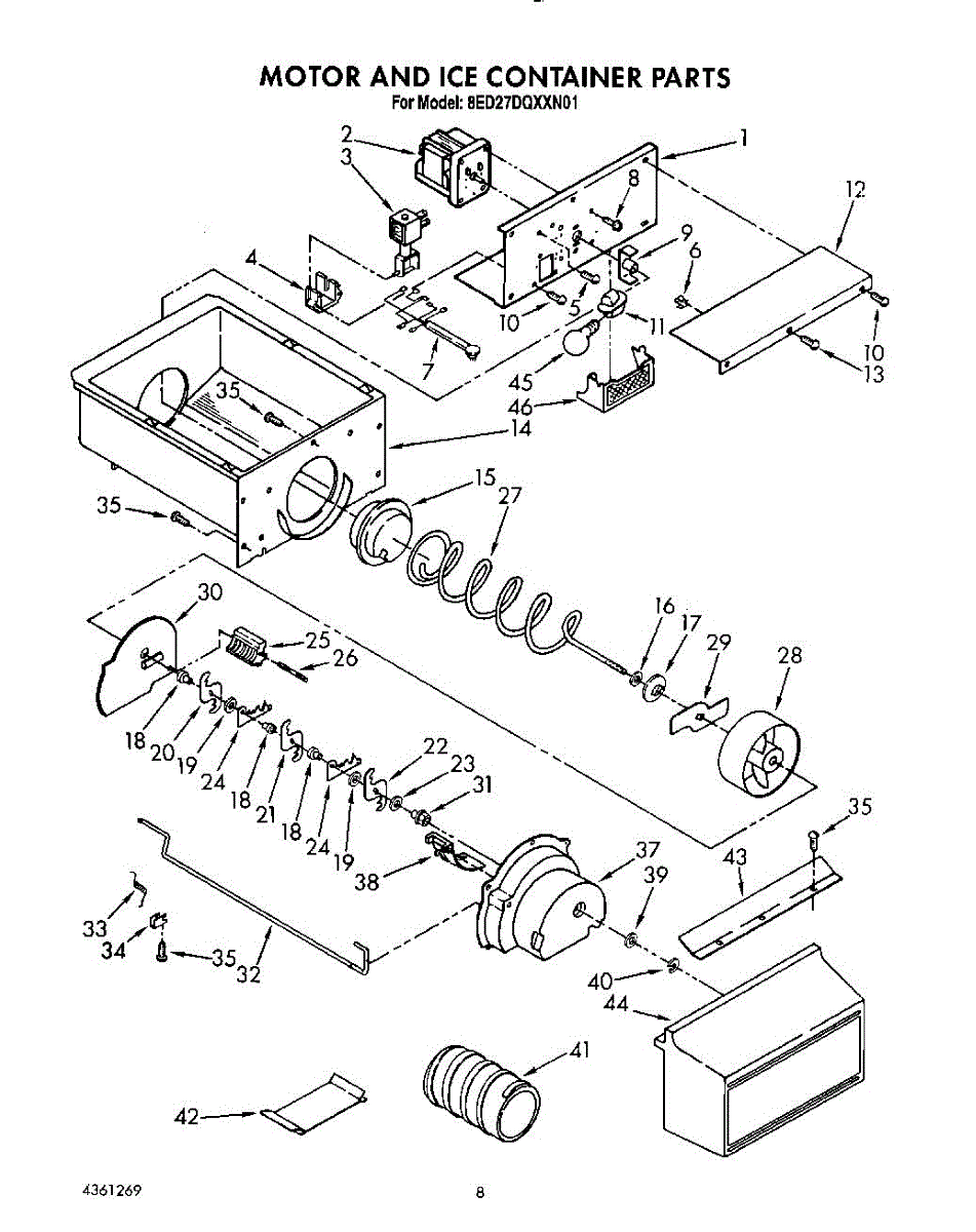 Parts for Whirlpool 8ED27DQXXN01: 06 - Motor And Ice Container Parts