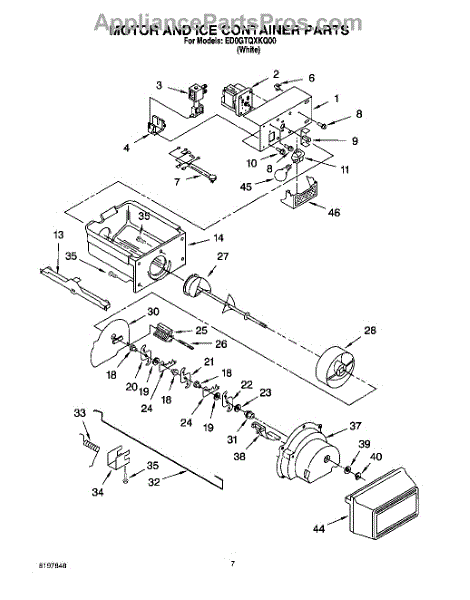 This is the ice container that stores and dispenses ice from the freezer. A clear, intact bin helps ensure reliable ice storage and smooth dispensing without jams or spills.