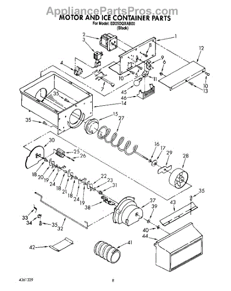 Parts for Whirlpool ED25DQXAB00: 06 - Motor And Ice Container Parts