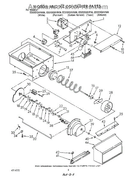 Parts for Whirlpool ED25DQXVM06: 06 - Motor And Ice Container Parts