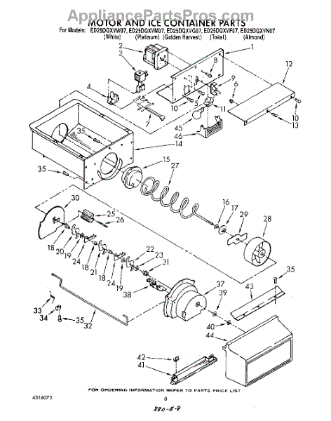 Parts for Whirlpool ED25DQXVN07: 06 - Motor And Ice Container Parts