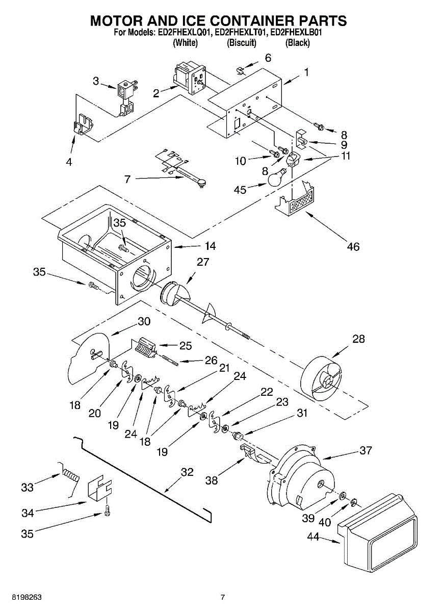 Parts for Whirlpool ED2FHEXLT01: 05 - Motor And Ice Container Parts