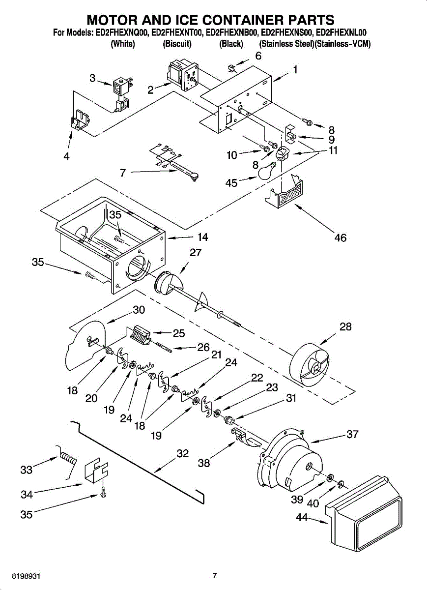 Parts for Whirlpool ED2FHEXNT00: 05 - Motor And Ice Container Parts