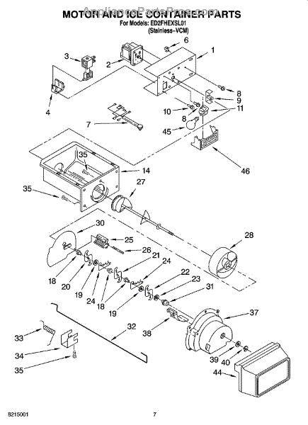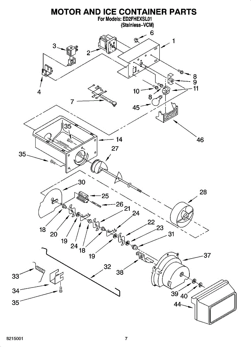 Parts for Whirlpool ED2FHEXSL01: 05 - Motor And Ice Container Parts