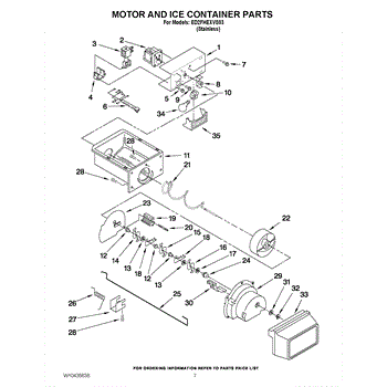 This is the complete horizontal ice dispenser bucket assembly with crusher. It fits 22 cubic foot refrigerator models. For 20 cubic foot models order WP2209778. For 25 and 27 cubic foot models order WPW10312300.