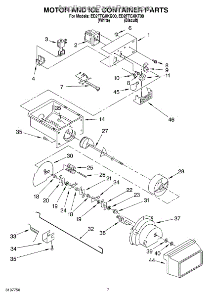 Parts for Whirlpool ED2FTGXKT00: 05 - Motor And Ice Container Parts