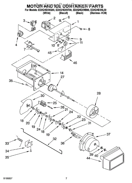 Parts for Whirlpool ED2GHEXNQ00: 05 - Motor And Ice Container Parts