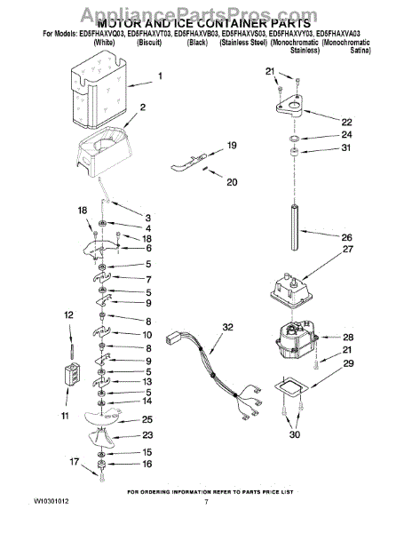 Parts for Whirlpool ED5FHAXVY03: 05 - Motor And Ice Container Parts