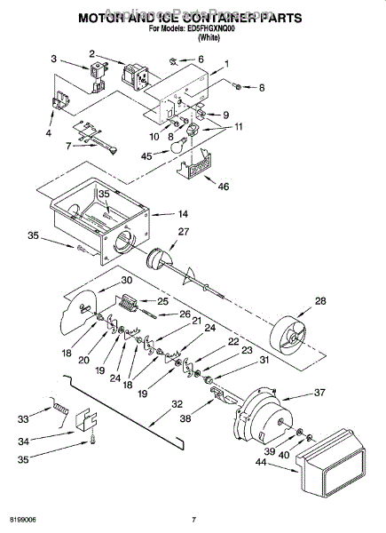 Parts for Whirlpool ED5FHGXNQ00: 05 - Motor And Ice Container Parts