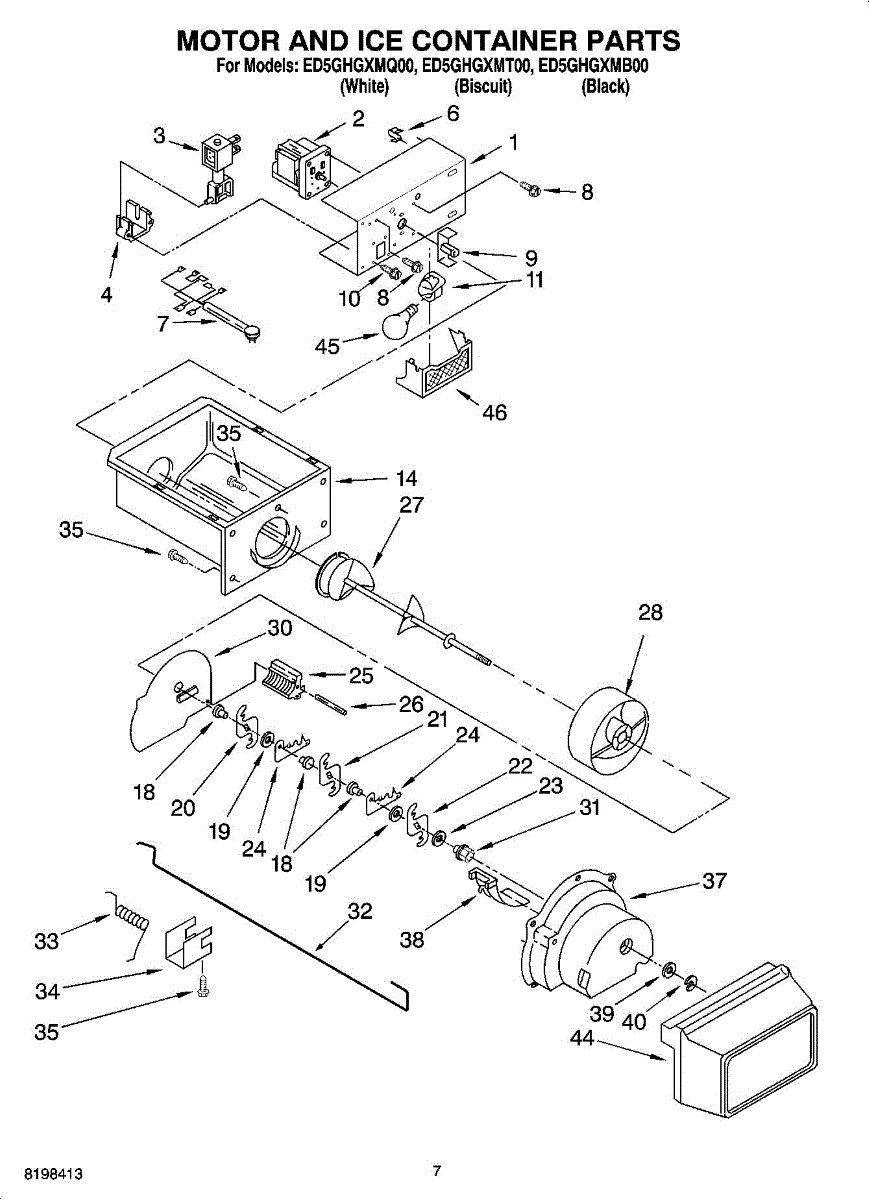 Parts for Whirlpool ED5GHGXMQ00: 05 - Motor And Ice Container Parts