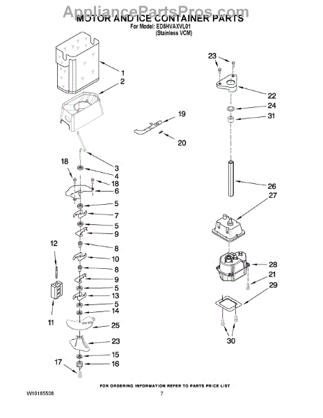 Parts for Whirlpool ED5HVAXVL01: 05 - Motor And Ice Container Parts
