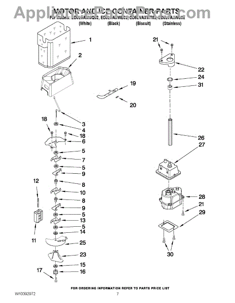 Parts for Whirlpool ED5LVAXWS02: 05 - Motor And Ice Container Parts