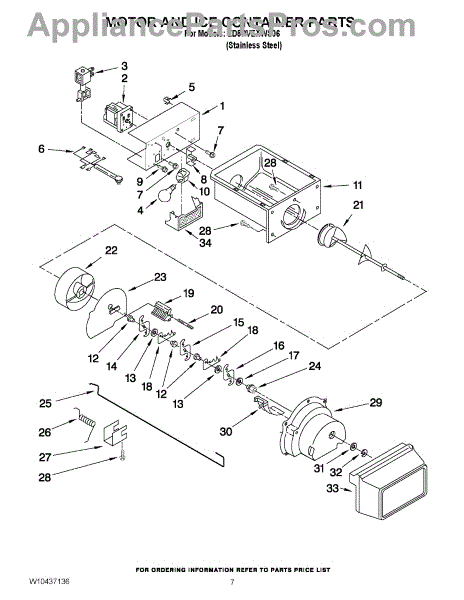 The Whirlpool ice dispenser motor is an OEM replacement part responsible for driving the mechanism that dispenses ice from the ice maker in a refrigerator. This motor is typically located within the ice container assembly, where it powers the auger or paddle responsible for pushing ice cubes through the dispenser chute and into a container or glass. When a user activates the ice dispenser on the refrigerator's exterior, the motor engages, causing the auger or paddle to rotate, delivering ice efficiently. This Whirlpool part can also be used on Maytag, KitchenAid, Jenn-Air, Amana, Magic Chef, Admiral, Norge, Roper, and Kenmore/Sears brand appliances. This part fixes the following symptoms