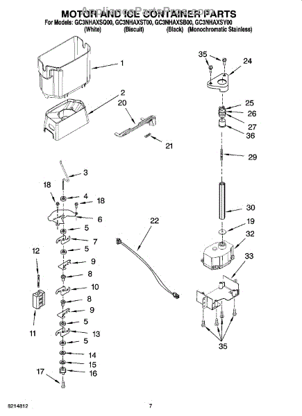 Parts for Whirlpool GC3NHAXSB00: 05 - Motor And Ice Container Parts