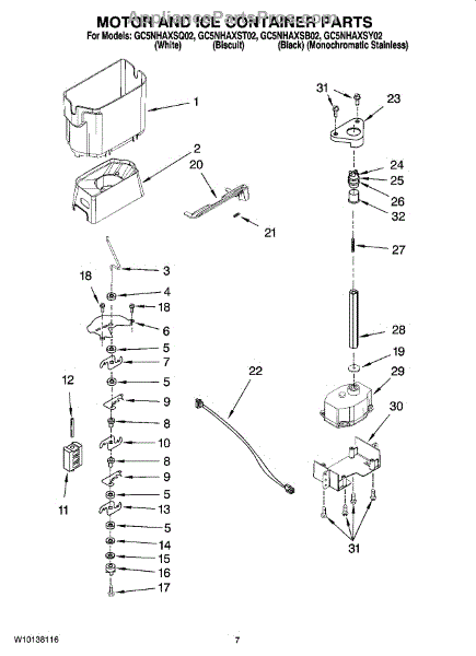 Parts for Whirlpool GC5NHAXSB02: 05 - Motor And Ice Container Parts