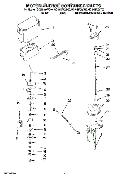 Parts for Whirlpool GC5NHAXVY00: 05 - Motor And Ice Container Parts