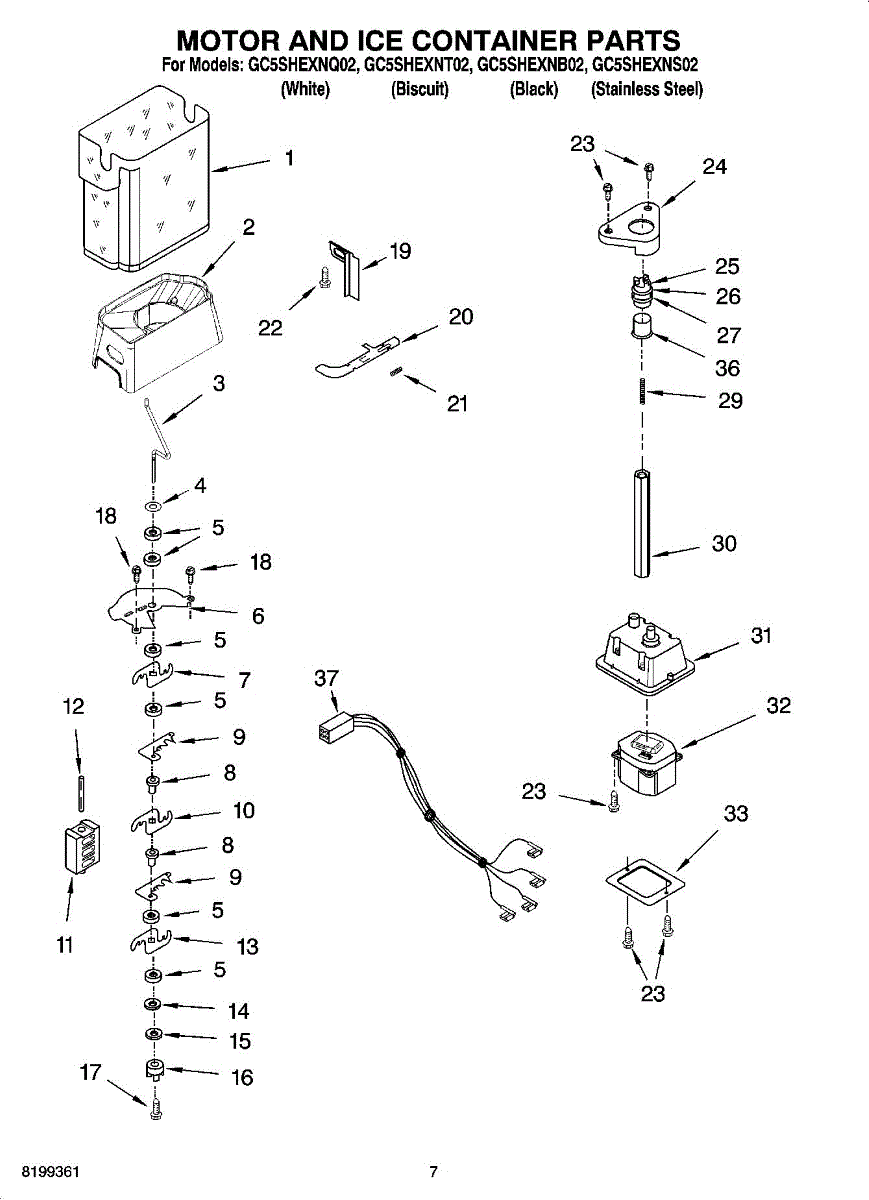 Parts for Whirlpool GC5SHEXNB02: 05 - Motor And Ice Container Parts