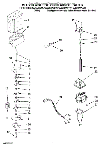 Parts for Whirlpool GD5DHAXVY00: 05 - Motor And Ice Container Parts