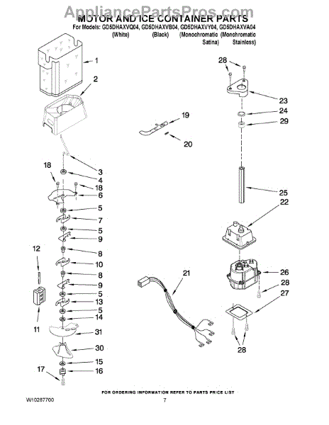 Parts for Whirlpool GD5DHAXVY04: 05 - Motor And Ice Container Parts