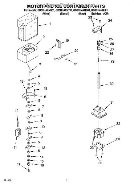Parts for Whirlpool GD5RHAXNB01: 05 - Motor And Ice Container Parts