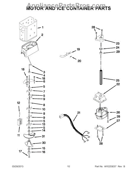 Parts for Whirlpool GD5RVAXVQ01: 05 - Motor And Ice Container Parts