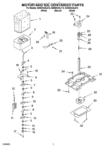 Parts for Whirlpool GD5SHAXLB12: 05 - Motor And Ice Container Parts