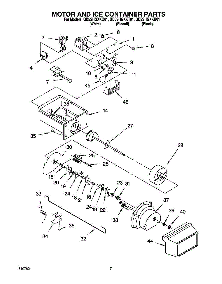 Parts for Whirlpool GD5SHGXKQ01: 05 - Motor And Ice Container Parts
