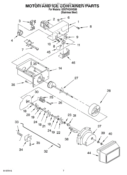 Parts for Whirlpool GD5THGXKS00: 05 - Motor And Ice Container Parts