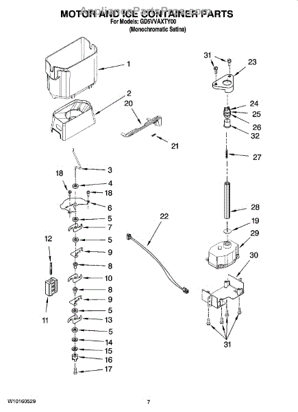 Parts for Whirlpool GD5VVAXTY00: 05 - Motor And Ice Container Parts