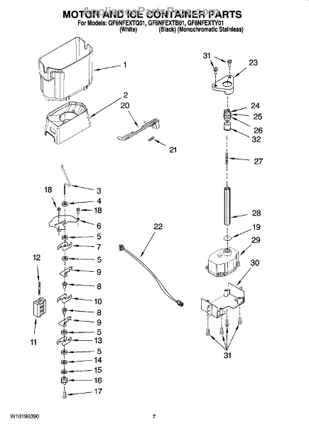 Parts for Whirlpool GF6NFEXTY01: 05 - Motor And Ice Container Parts