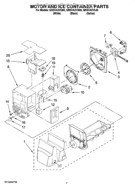 Parts for Whirlpool GI5SVAXVL00: 04 - Motor And Ice Container Parts