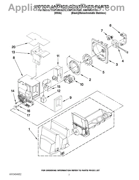 Parts for Whirlpool GI6FARXXQ03: 04 - Motor And Ice Container Parts