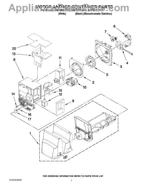 Parts for Whirlpool GI6FDRXXB03: 04 - Motor And Ice Container Parts