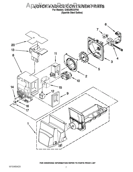 Parts for Whirlpool GI6SARXXF04: 04 - Motor And Ice Container Parts
