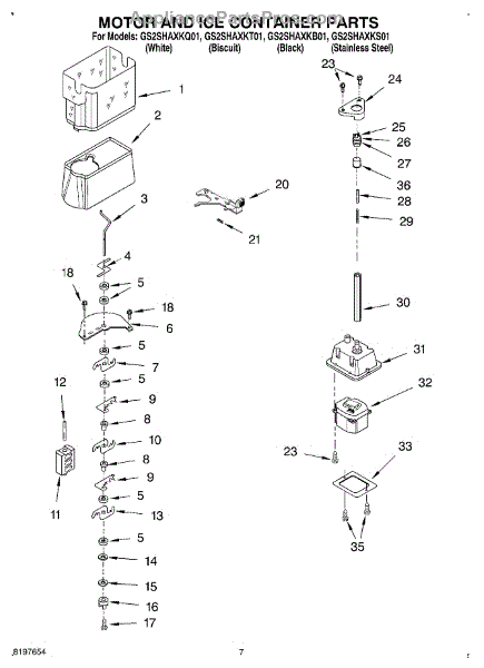 Parts for Whirlpool GS2SHAXKB01: 05 - Motor And Ice Container Parts