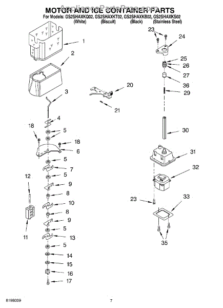 Parts for Whirlpool GS2SHAXKQ02: 05 - Motor And Ice Container Parts