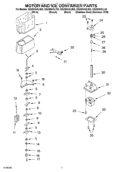 Parts for Whirlpool GS2SHAXLB03: 05 - Motor And Ice Container Parts