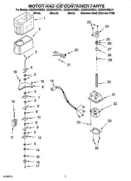Parts for Whirlpool GS2SHAXNS01: 05 - Motor And Ice Container Parts
