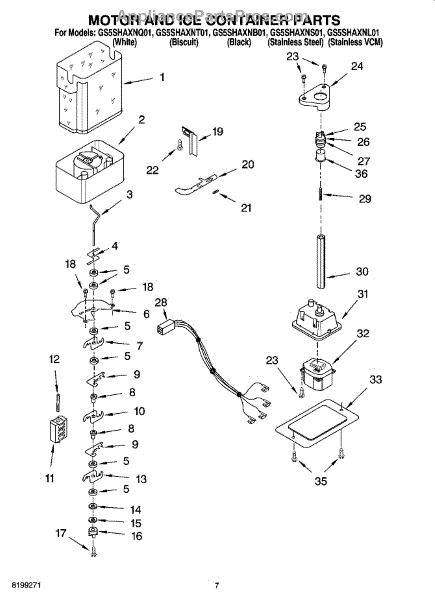 Parts for Whirlpool GS5SHAXNQ01: 05 - Motor And Ice Container Parts