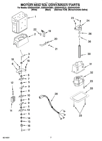 Parts for Whirlpool GS5SHAXSL01: 05 - Motor And Ice Container Parts