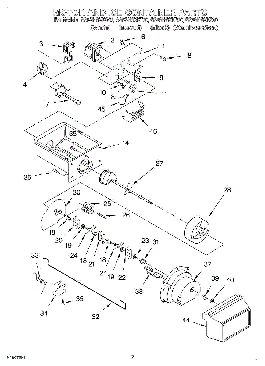 Parts for Whirlpool GS5SHGXKT00: 05 - Motor And Ice Container Parts