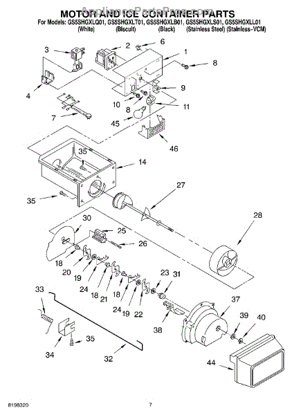 Parts for Whirlpool GS5SHGXLB01: 05 - Motor And Ice Container Parts