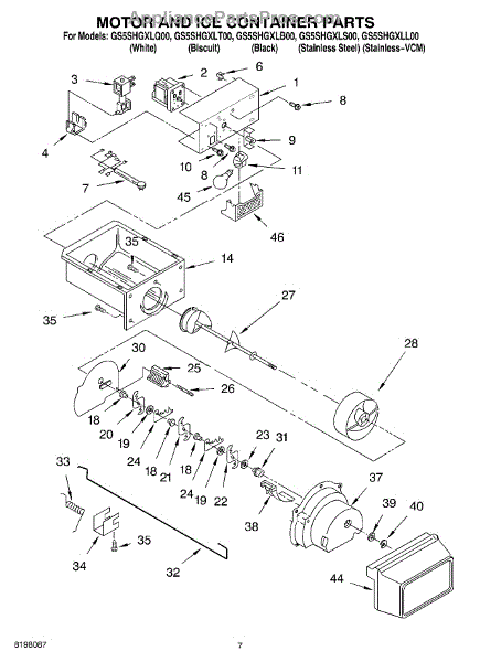 Parts for Whirlpool GS5SHGXLT00: 05 - Motor And Ice Container Parts