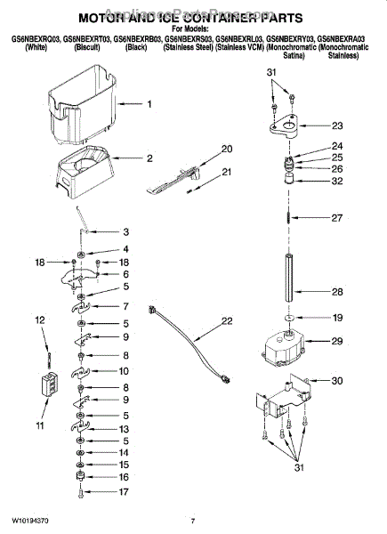 Parts for Whirlpool GS6NBEXRQ03: 05 - Motor And Ice Container Parts
