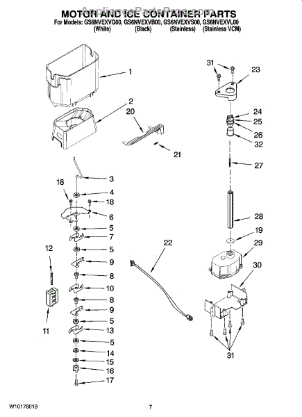 Parts for Whirlpool GS6NVEXVS00: 05 - Motor And Ice Container Parts