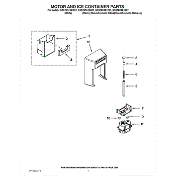 Parts for Whirlpool GSS26C4XXB02: 05 - Motor And Ice Container Parts