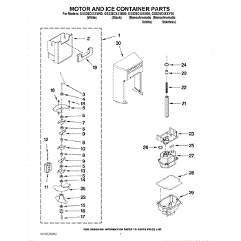 Parts for Whirlpool GSS26C4XXW00: 05 - Motor And Ice Container Parts