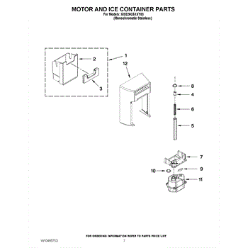 This ice container (ice bin) stores ice made by the icemaker and interfaces with the dispenser drive to deliver cubes or crushed ice. Replacing a cracked or worn bin restores dependable ice storage and dispensing performance.