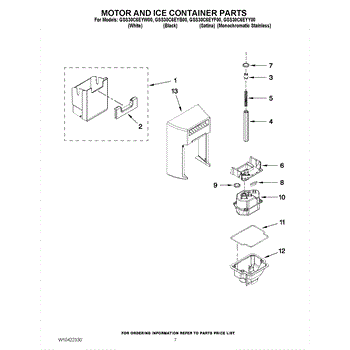 Parts for Whirlpool GSS30C6EYW00: 05 - Motor And Ice Container Parts