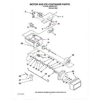 The Ice Container Assembly is an OEM part for Whirlpool refrigerators. This assembly includes the ice bin, where ice is collected, and often features integrated mechanisms or augers for dispensing ice through the refrigerator's door.
